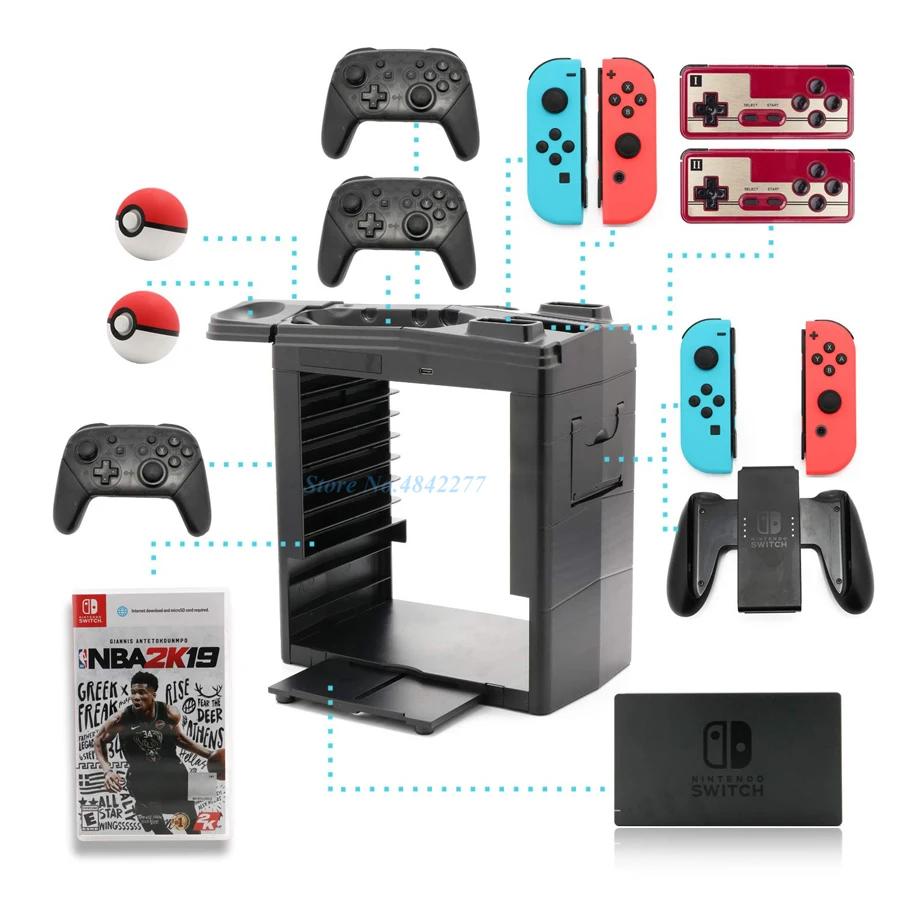 Nintend Switch Games Disc Storage Charger Stand Nintendoswitch Console Pokeball Controller Holder Nintendos Game Accessories